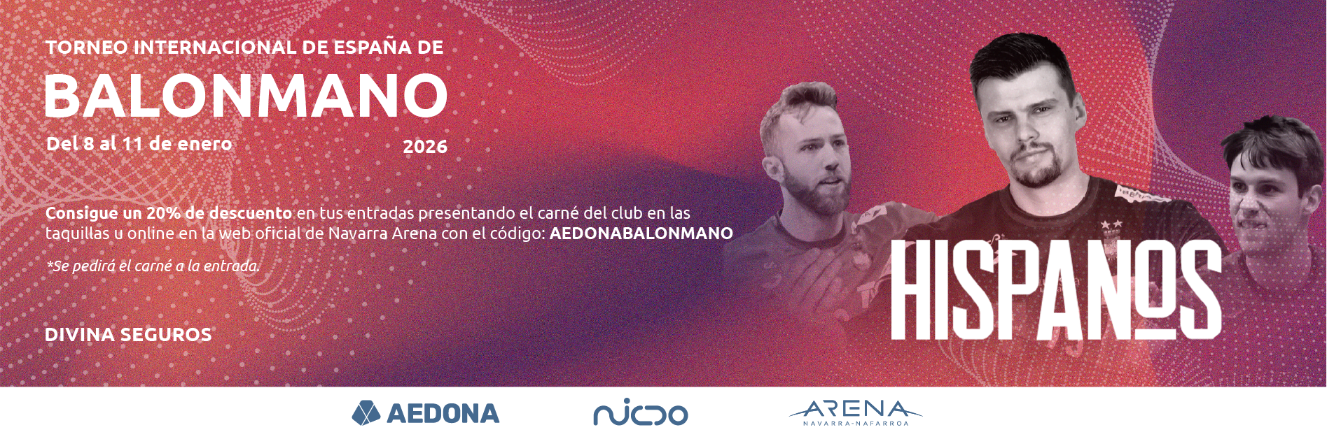 Las entradas con el 20% de descuento se pueden conseguir en la taquilla presentando el carné/app de socio/a o bien en la web oficial del Navarra Arena con el código que os parece en el banner (AEDONABALONMANO).